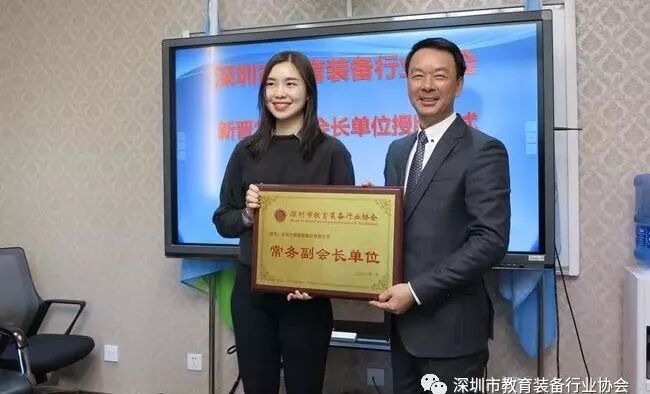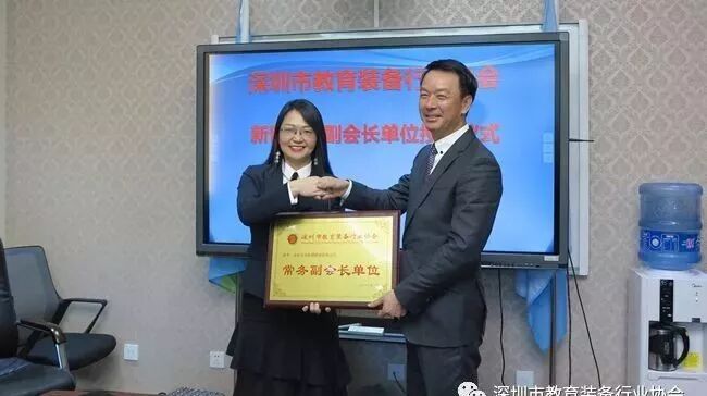 座谈会结束后,在王富会长、夏国明副会长兼秘书长的见证下,彭锦环会长为深圳市教育装备行业协会新晋常务副会长单位——深圳市众投邦股份有限公司、深圳市大熊创新股份有限公司,副会长单位——北京世纪超星信息技术发展有限责任公司进行了授牌。